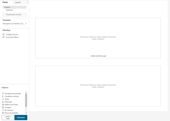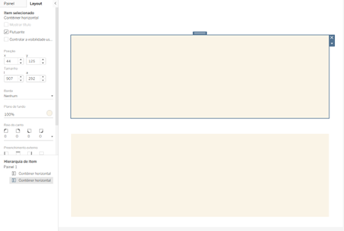 Abra um novo painel. Selecione a opção flutuante abaixo dos objetos e em seguida arraste dois contêiners (vertical ou horizontal) para a área em branco do painel conforme imagem abaixo.