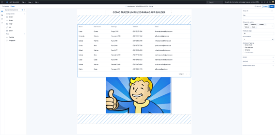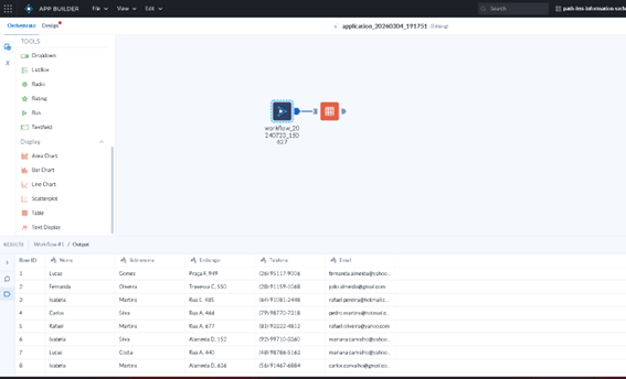 Após escolher o fluxo, preste atenção se os dados estão vindo da maneira desejada e conecte a ferramenta que você preferir para o APP. No nosso caso usamos uma simples ferramenta de Table.
