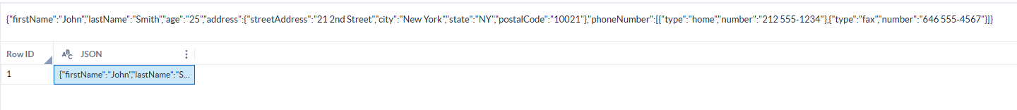 Podemos ver que nossa base possui apenas uma célula com dados no formato JSON.