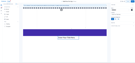 Em texto podemos adicionar textos ao nosso aplicativo, em dois formatos: Heading e Paragraph.