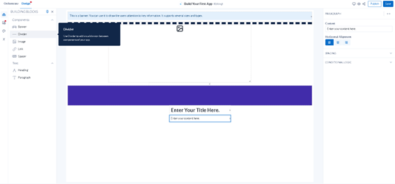 Essa dica ensinará a usar os componentes disponíveis para configurar o design do seu app.
