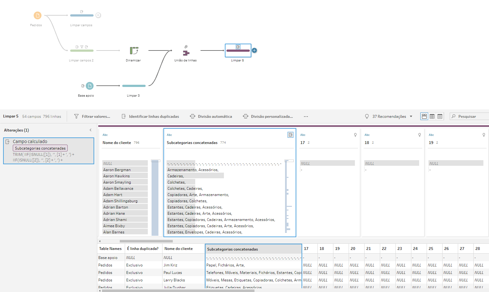 Passo 4: Criar uma base de apoio para normalizar o número de subcategorias dos clientes e uni-la com o fluxo (opcional)