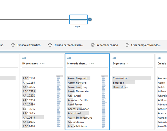- No painel de perfil, encontre a coluna que você quer limpar (vamos usar “Nome do Cliente”).