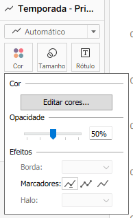 Depois, clique em cor e muda a opacidade para 50%.