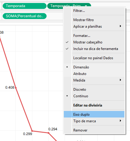 Agora clique com o botão direito do mouse no campo calculado em colunas e selecione eixo duplo.