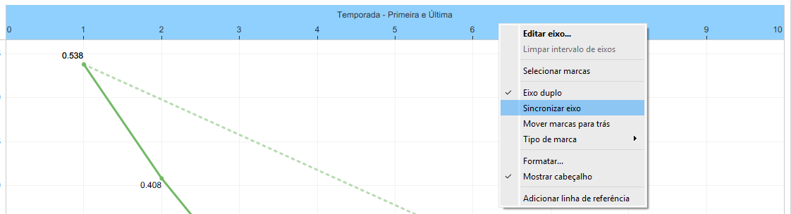 Em seguida, clique no eixo do gráfico e selecione Sincronizar eixos.