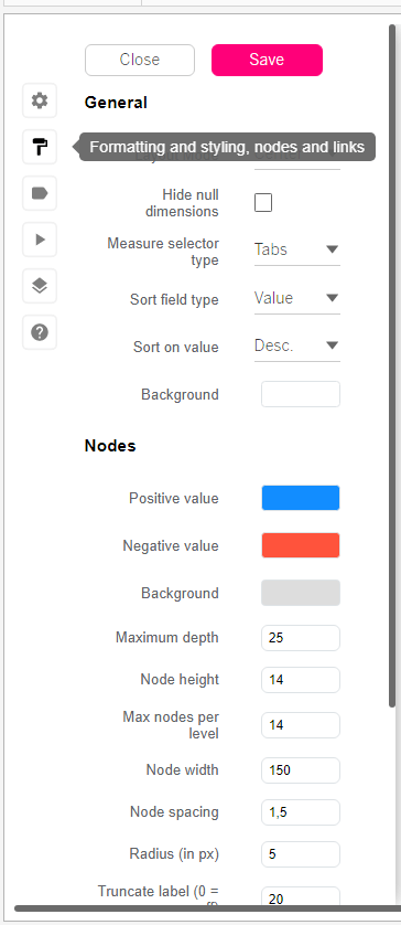 Passo 4: Clique no botão “Formatar extensão”, vá até a guia “Nodes” e selecione Azul para “Positive Value” e Vermelho para “Negative Value” para ficar igual a imagem abaixo: