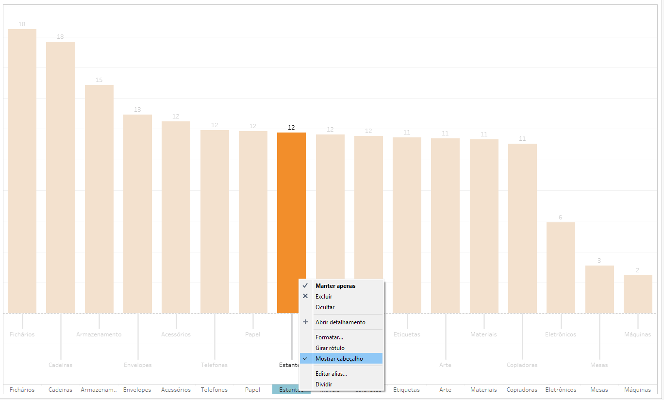 Clique com o botão direito do mouse no eixo de Sub-categoria e selecione Mostra cabeçalho.