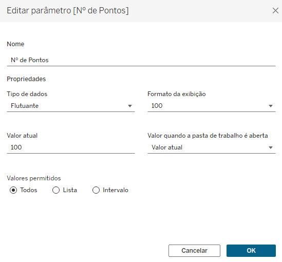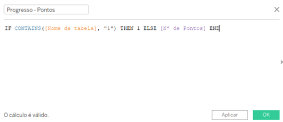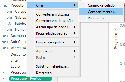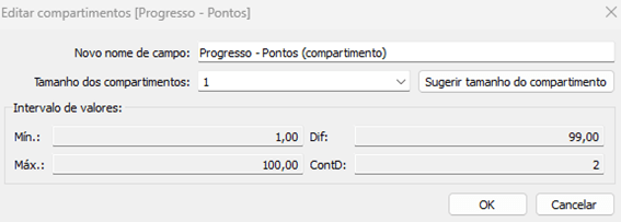 Clique com o botão direito no campo “Progresso – Pontos” e crie um compartimento com as configurações abaixo: