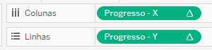 Arraste “Progresso – X” para a bandeja de colunas e “Progresso – Y” para a bandeja de linhas.