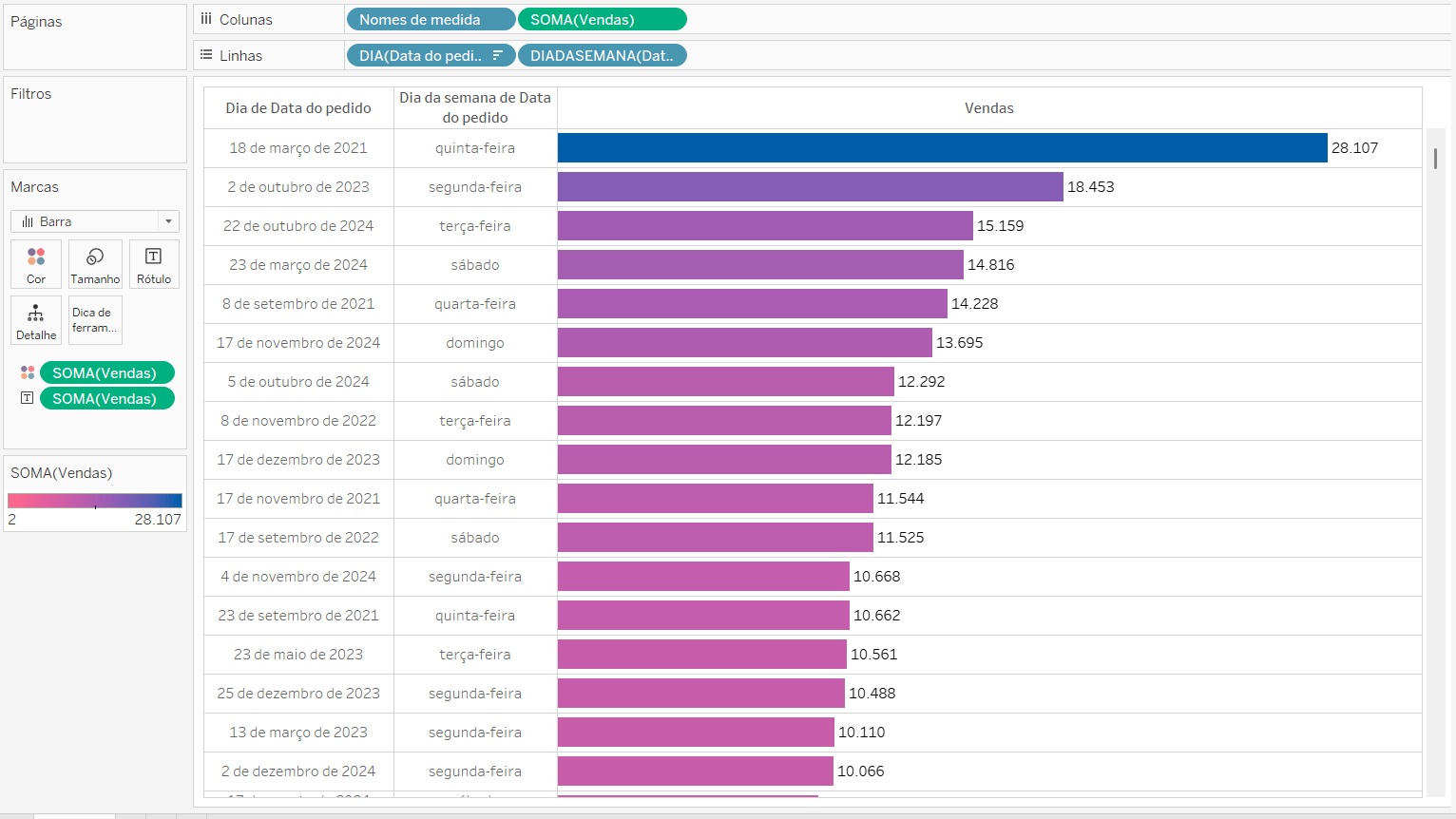 Pronto! Agora você já sabe como filtrar um gráfico somente com os dias de semana.