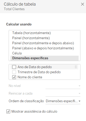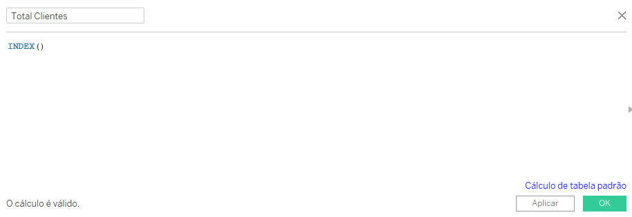Edite o cálculo de tabela do campo Total Clientes para ficar assim.