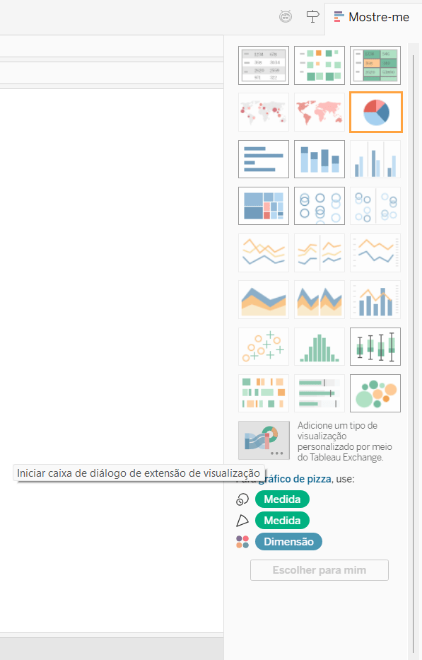 O “Escolher para mim” é vantajoso especialmente para usuários que estão começando a usar o Tableau e precisam de sugestão de visualizações.