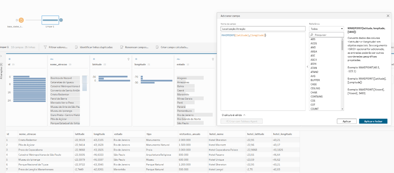 As nossas velhas conhecidas MakePoint e MakeLine agora estão aqui no Tableau prep., e funcionando da mesma forma que no Tableau Desktop