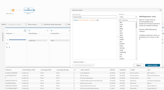 Também falando em fórmulas, temos as clássicas fórmulas para interação com o objeto espacial como Buffer, Distance, Area, Length. Todas funcionam da mesma que no Tableau Desktop