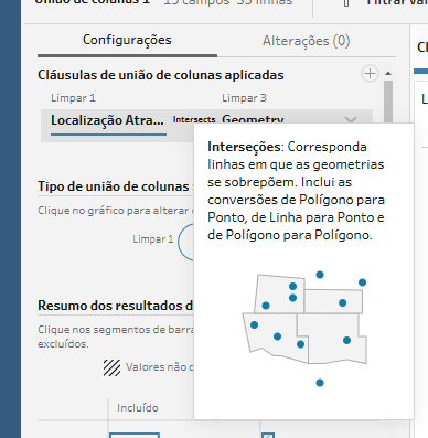E aqui novamente temos também fórmulas como Intersects e Outline, mas e se nós tentarmos agregar objetos espaciais através da etapa de Junção?