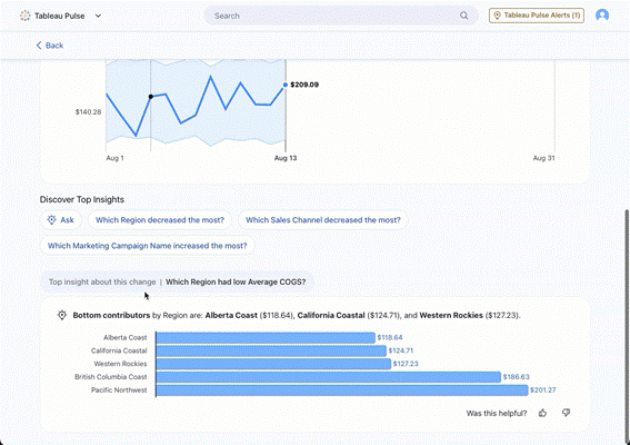 Para aprofundar ainda mais a análise de dados, o Tableau Pulse introduz um novo tipo de insight: Métricas Correlacionadas. Este recurso inovador permite que os usuários identifiquem relações significativas entre diferentes métricas, revelando correlações chave nos dados. Essa funcionalidade é crucial para entender as interdependências e impulsionar decisões mais informadas. Assim como as atualizações de Q&A, os Insights de Métricas Correlacionadas estão geralmente disponíveis na edição Tableau+ do Tableau Cloud.