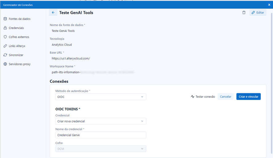 9. Clique em Conectar para ser levado para a pagina de autenticação de login do Alteryx One workspace.