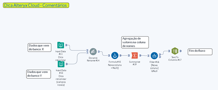Pronto! Agora você já sabe como usar comentários no fluxo Alteryx Cloud.